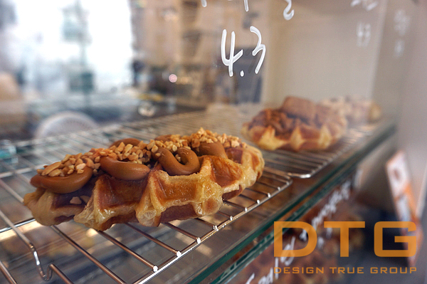 메인 바(bar) & 작업대 전면을 와플의 모자이크를 형상화 하여, 입체로 디자인 포인트 강조,