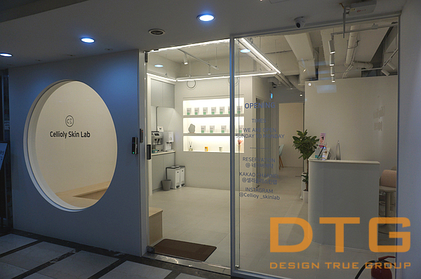 곳곳의 라운딩과 유리를 접목하여, 피부 관리샵의 아름다움과 깨끗한 이미지를 위한,