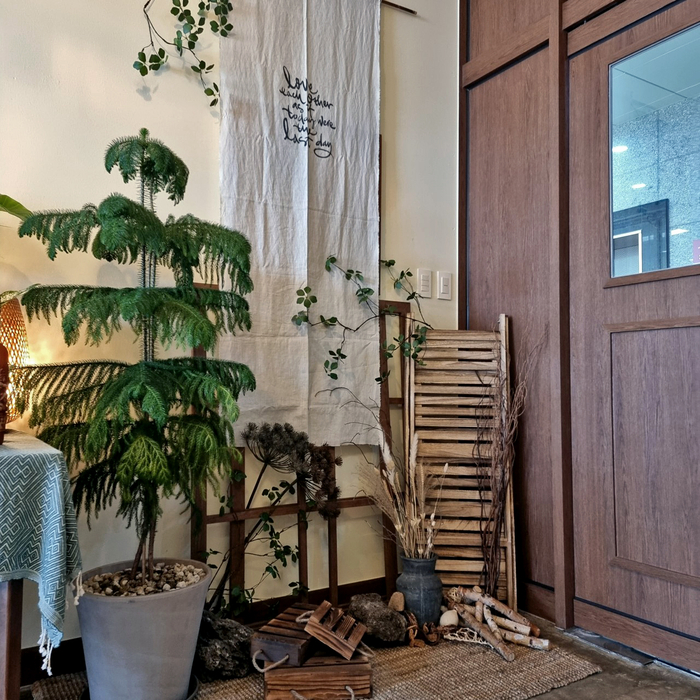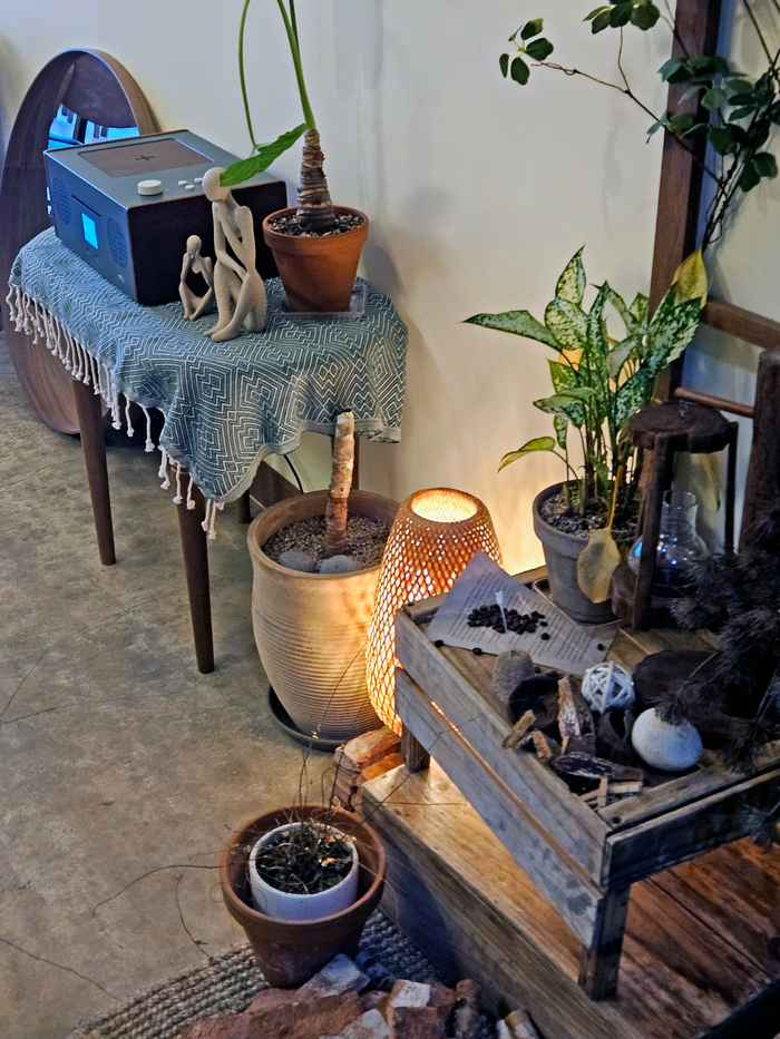 우드컬러를 베이스로 하여 세미클래식과 요소의 엔틱한 소품배치를 통한 이미지 연출 극대화.