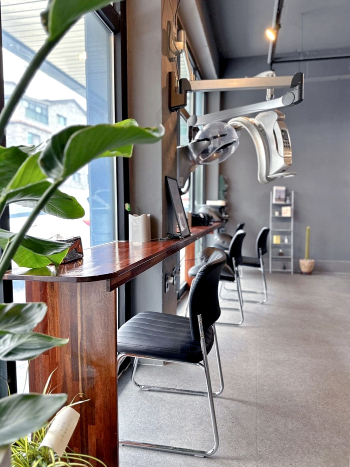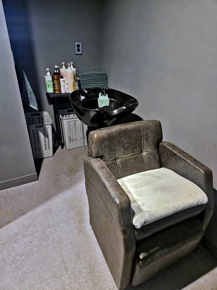 총 17평, 경대(공간)2EA, 대기석, 카운터, 샴푸실, 탕비실(약장실), 화장실.