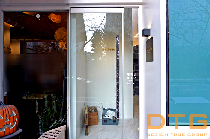 베이킹룸이 보일수 있도로 창을 설치하여, "수제 제빵소"의 신뢰를 줄수있는 디자인 및 설계,