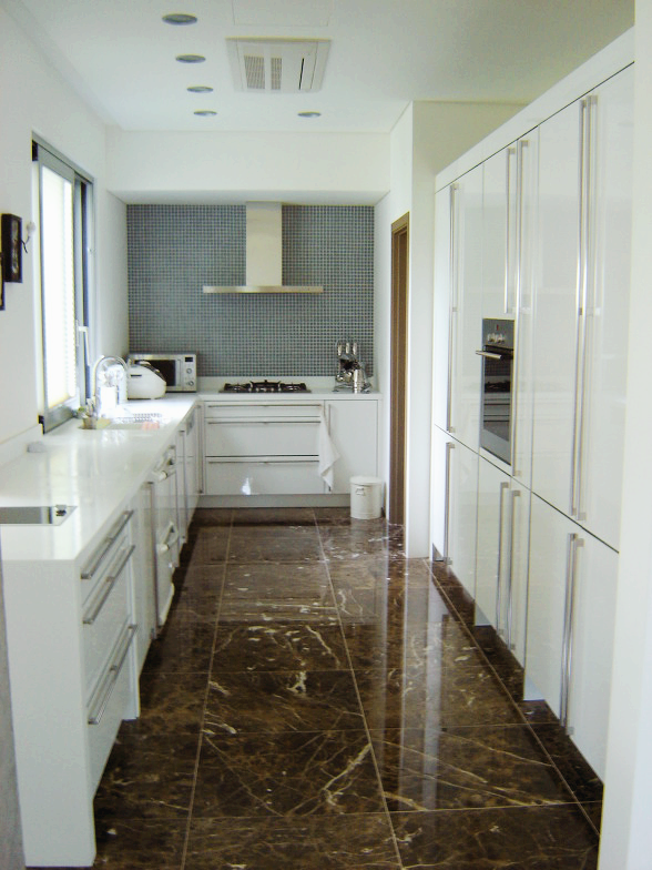 모던함을 주로 하며, 고급스러움과 내구성을 강조, 대리석을 바닥재로 사용