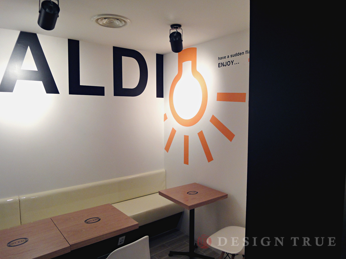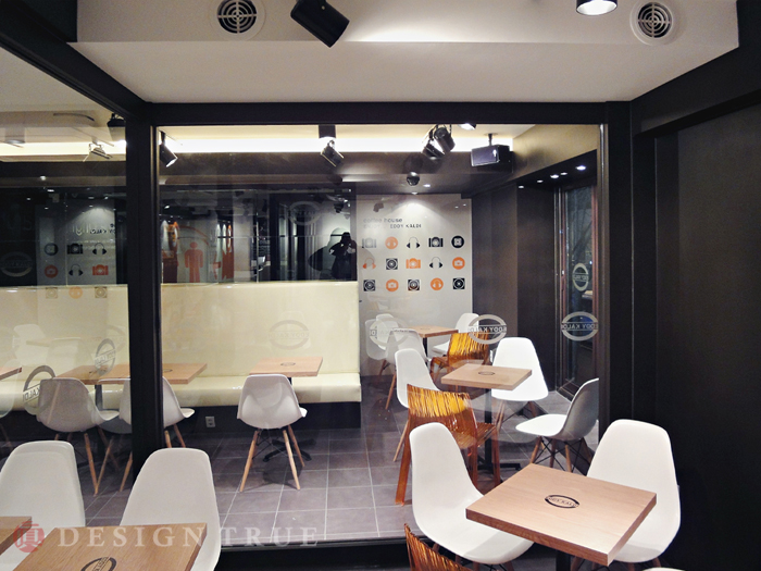 기존 커피전문점 이미지 탈피. 브랜드(프렌차이즈) 메인컬러로 브라운 & 오랜지 접목.