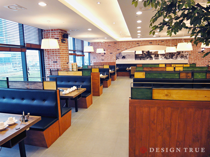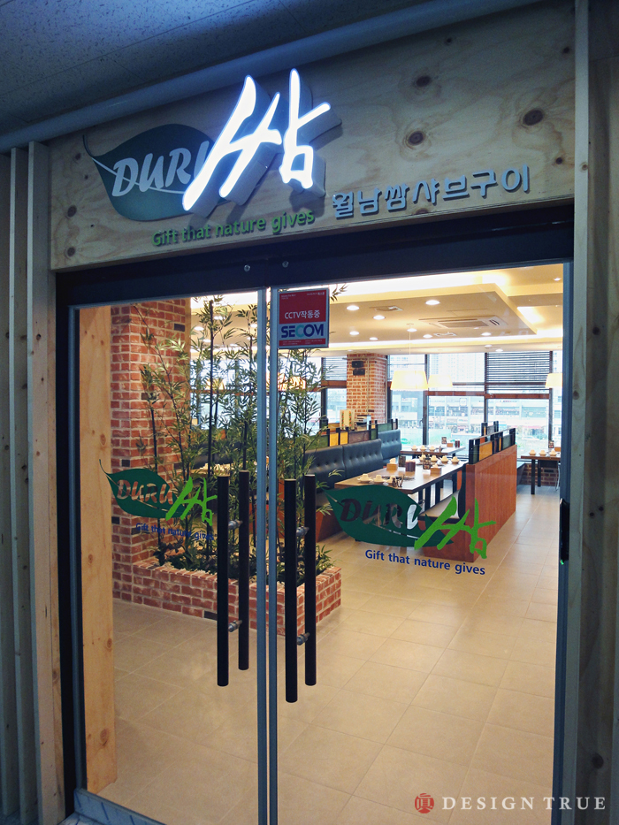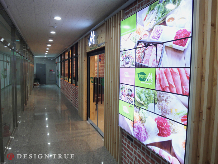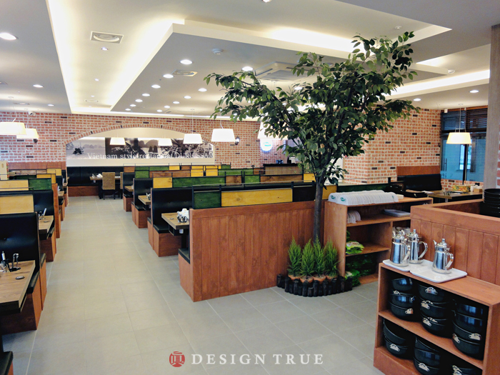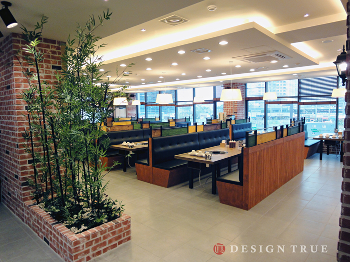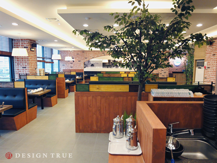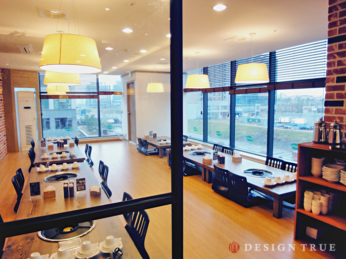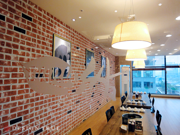 주마감 소재로 파벽돌과 원목판넬을 이용, 그에따라 샤브샤브 메뉴에 어울리는 디자인 극대화...