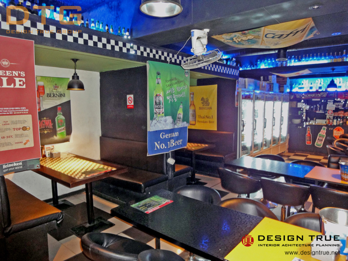 젊은...신세대적인 감각의 음식에 걸맞는 "퓨전" 컨셉을 모디브로한 실내 디자인.