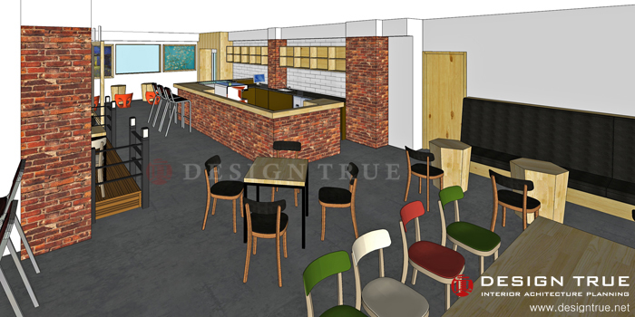 (점주의 요구사항으로 파벽석 마감을 접목 하였으나, 3D C.G 작업한 결과,