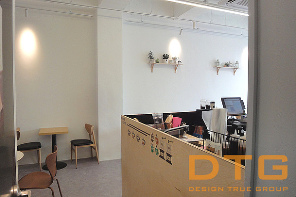 기존 까페의 구조를 탈피하여, 작업 공간인 바를 디자인 포인트로 극대화한 공간 강조.