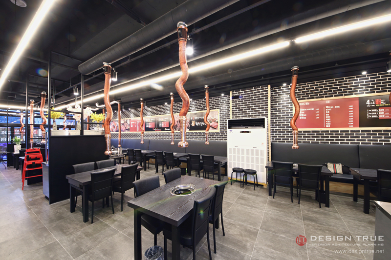 55평 규모로 총 64석 규모의 홀, 카운터, 주방, 보조주방, 조립 저장고, 탕비실, 숯 착화실...
