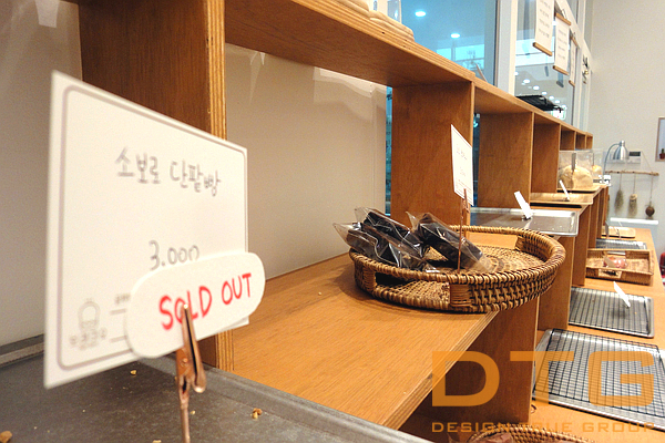 외부(복도측)에서 제빵의 모습을 볼수 있도록 노출된 디잔인 접목, 그에따른 실내 공간 연출
